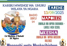 Mhe Col Mathias J kahabi Mkuu wa Wilaya Ngara anawakaribisha Wananchi wote kwenye Mapokezi ya Mwenge wa uhuru tarehe 13/09/2025 Uwanja wa Mpira Baramba LUKOLE HIGH SCHOO ...