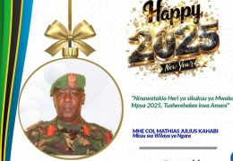 Mhe Col Mathias Julius Kahabi - DC Ngara kwa niaba ya Kamati ya Ulinzi na Usalama (KU) Wilaya anawatakia Heri ya Mwaka MPYA 2025 Wananchi wote wa Wilaya ya NGARA washerehekee kwa amani na utulivu kwan...